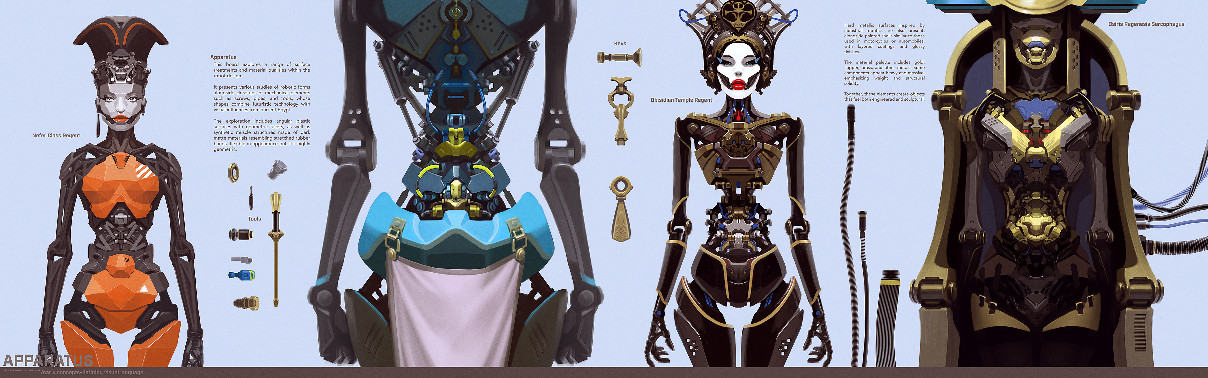 Whenever time allows it at the beginning of a project, I create a series of exploratory boards before the actual production work begins. These explorations are intentionally unconstrained. I approach the universe as if I were responsible for inventing it entirely on my own.